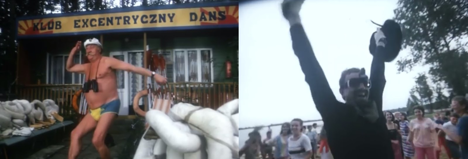 Budzi się nowy dzień, panna Wierzchoń przygotowuje pyszne śniadanko, i mamy scenę z budzeniem Bigosa przy pomocy jajecznicy. Kiedy Bigos zaczyna opowiadać, że miał piękny sen o damskich duchach, przypomina mi się od razu sposób, w jaki przytulał się i głaskał swoją gitarę przez sen. Nie wiem, czy to jakiś przemycony humor dla dorosłych, ale w sumie nie chcę wiedzieć. Po śniadaniu Tomasz fotografuje okolicę. Po południu bohaterowie udają się do stołówki na posiłek i poznają Marysię (tutaj Mery) graną przez Annę Majcher. Jeśli ktoś nie zna, pani Anna to PRL-owska seksbomba, dorównująca „walorami” Kasi Figurze, ale nie dorównująca jej zdolnościami aktorskimi. Scena ze stołówki jest dość wierna książce. Później widzimy scenę grupowego tańca nad brzegiem jeziora(?). Grupka przypadkowych ludzi tańczy wspólnie w rytm piosenki disco niczym w bollywodzkim filmie. Przez lornetkę obserwuje ich półnagi wąsacz w czapce marynarskiej, który też próbuje tańczyć, ale chyba nie umie(?). Po chwili w tańczącą grupę wpada dwóch opryszków, których poznaliśmy wcześniej. Wszyscy tańczą razem. Nawet Janiak z daleka sobie nuci pod nosem. Opryszki świetnie się bawią, a ja nie mam pojęcia, o co chodzi. Może to naprawdę jakiś prequel Twin Peaks? Dobra wiadomość jest taka, że to już pół godziny filmu, zła, że film trwa półtorej godziny. Jedynie muzyka w tej scenie nie jest najgorsza.